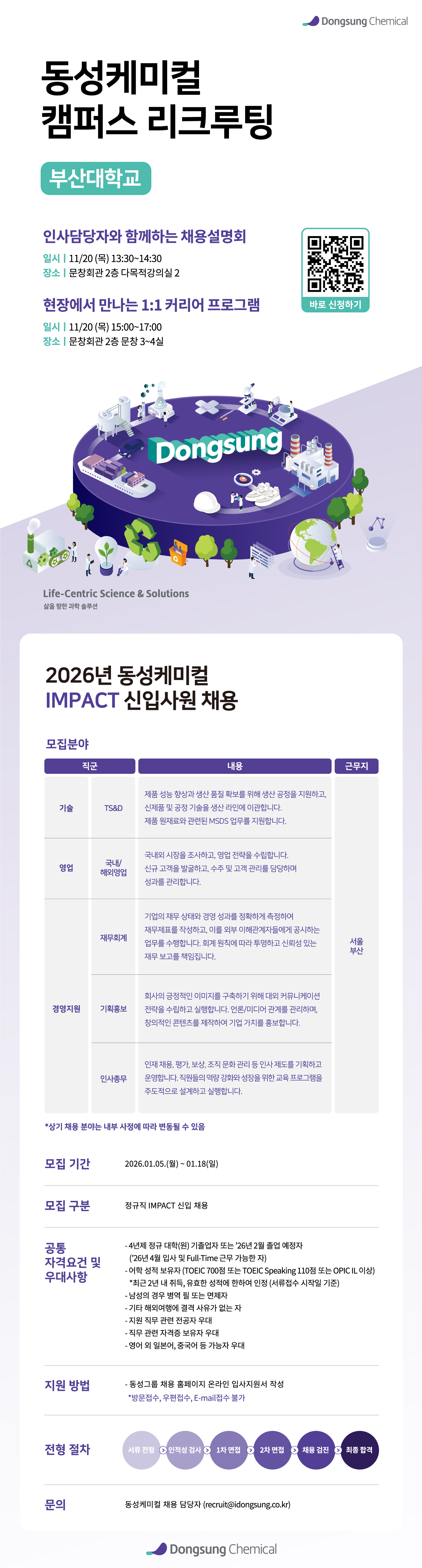 동성케미컬 IMPACT 2026 공개채용, 캠퍼스에서 먼저 만나보세요!