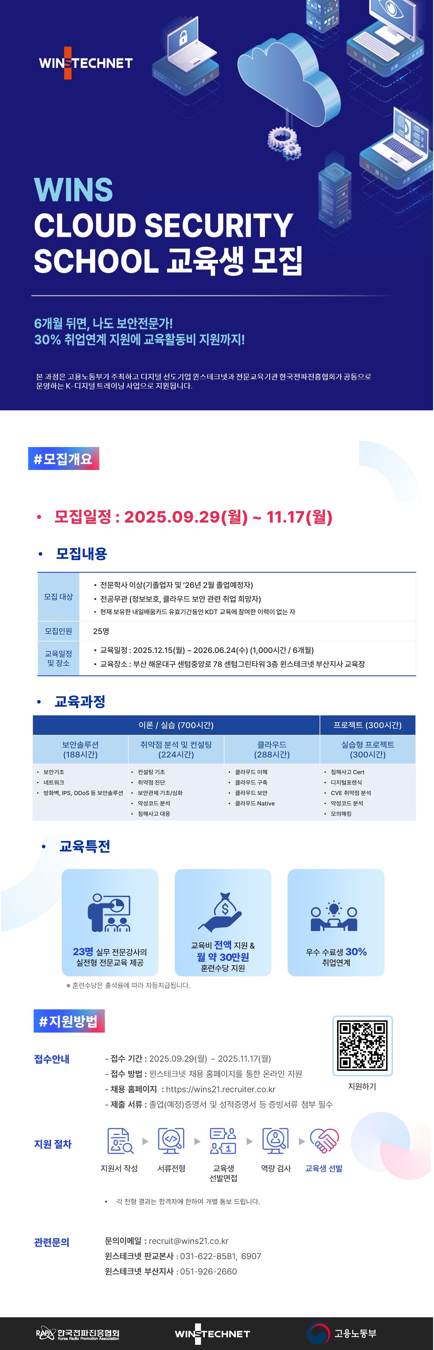 * 수료 후 진로 : 정보보호 컨설턴트, 침해사고대응전문가 등